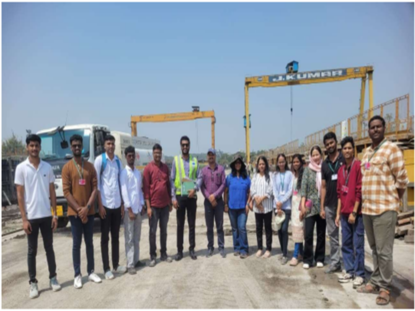 The objective of the site visit was to provide students with practical exposure to on-site construction activities, segment casting procedures, site management practices, and safety protocols followed in large-scale infrastructure projects.